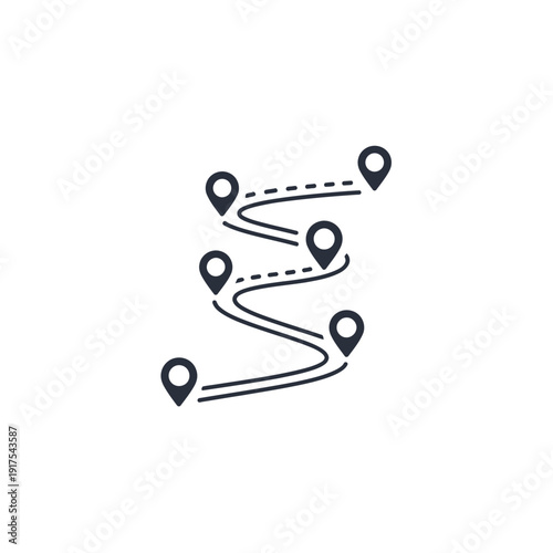 Pathway with Multiple Destination Markers Illustrating Journey and Exploration