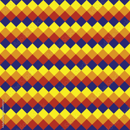 Pattern created from yellow, royal blue, gold and orange diamonds