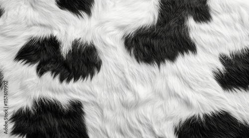 Pattern of black and white cowhide with distinct shapes and textures displayed on a smooth surface