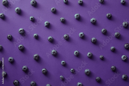 pattern of ripe blueberries on violet surface