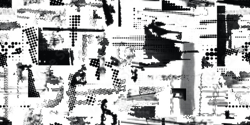 Pattern with halftone dots. Cyber punk seamless dotted pattern .Futuristic background . Pattern with various halftone dots elements .Endless dot pattern texture. Halftone effect .Vector