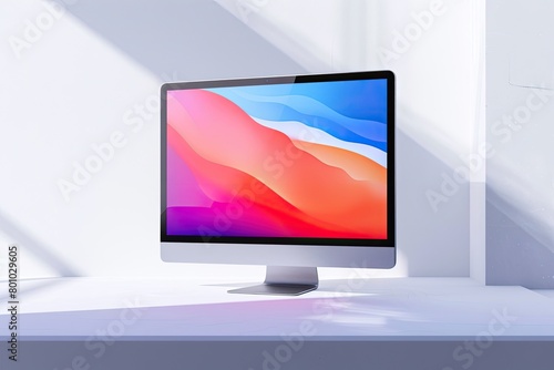 PC mockup in a minimalist studio space, its screen providing a blank canvas for digital art and design