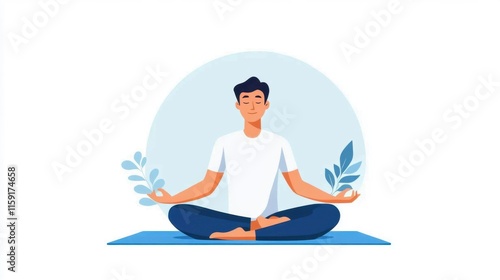 Peaceful Man Meditating with Leaves in Minimalist Flat Design