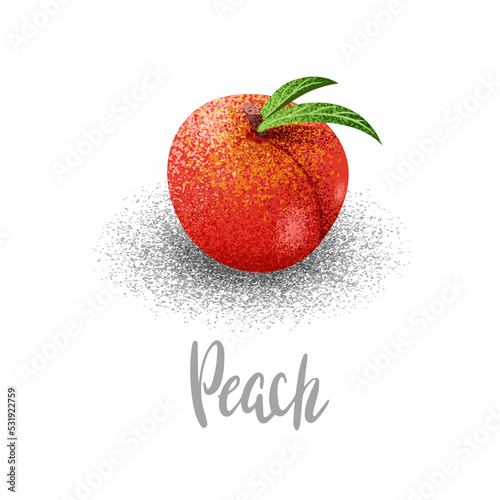 Peach, organic fruit, vegetarianism, vitamins in the garden vector illustration, vector particles, grain style.