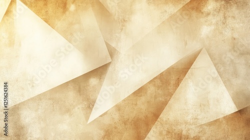 Peachy beige abstract design with polygon angles and folded shadows. Grungy rough texture with a soft golden light gradient.