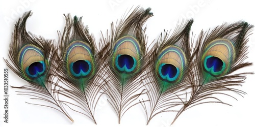 Peacock feathers on a white backdrop