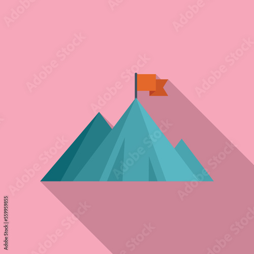 Peak flag on mountain icon flat vector. Top career. Concept reach