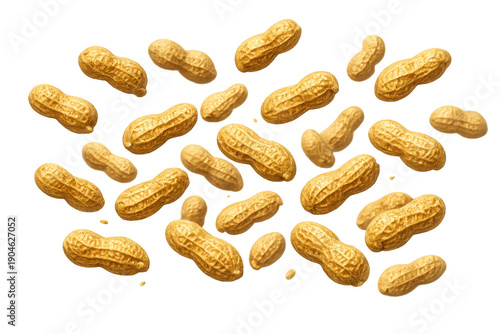 Peanuts falling and spreading out, representing a snack, healthy eating, or ingredient concept. Transparent background