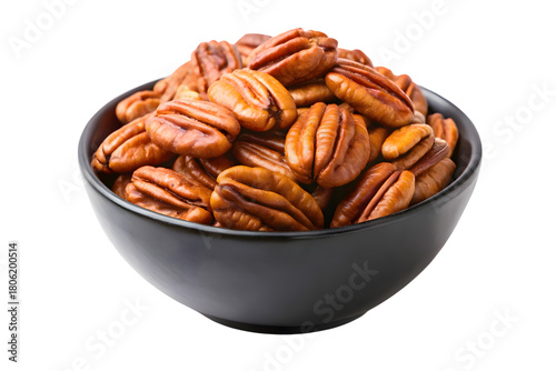 Pecans in a Black Bowl on a Black Background Close up