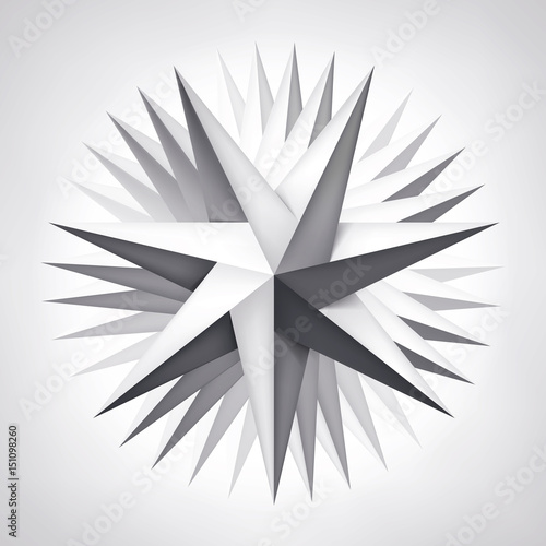 ПечатьVolume rotation seven-pointed twisted star, 3d object, geometry shape, mesh version, abstract vector