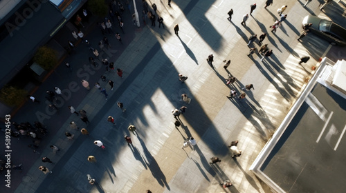 Pedestrians on the street. People crossing the street, top view, night scene. Ai illustration, fantasy digital, artificial intelligence artwork