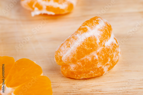 Peeled ripe orange tangerine, close up