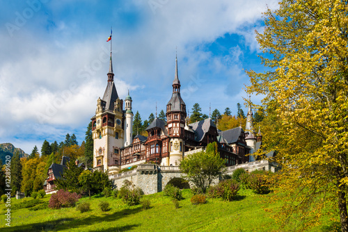 Peles castle Sinaia in autumn season, Transylvania, Romania protected by Unesco World Heritage Site
