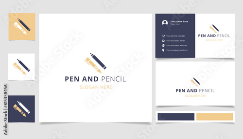 Pen and pencil logo design with editable slogan. Branding book and business card template.