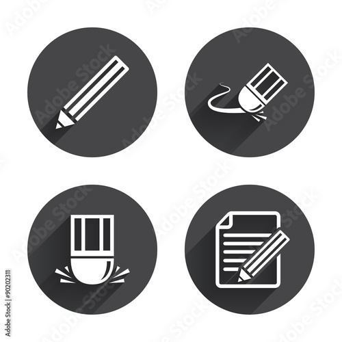Pencil icon. Edit document file. Eraser sign.