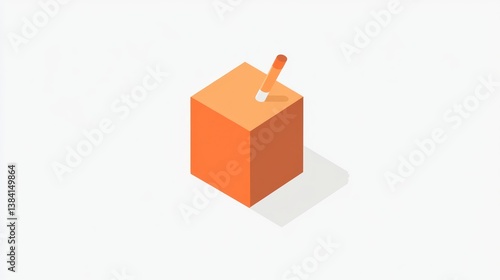 Pencil Inserted into a Cube Minimalist Design for Creativity and Education Concepts