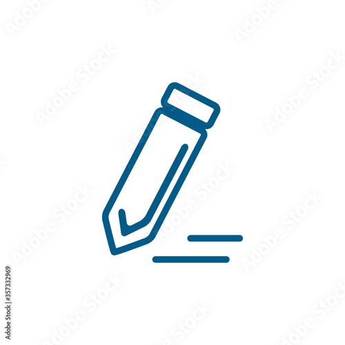 Pencil Line Blue Icon On White Background. Blue Flat Style Vector Illustration.