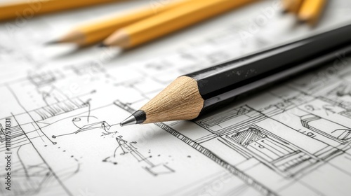 Pencil Sketch of Architectural Blueprint - Design and Construction Plans