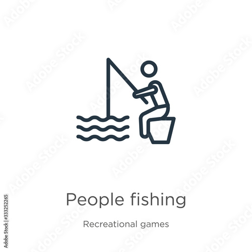 People fishing icon. Thin linear people fishing outline icon isolated on white background from recreational games collection. Line vector sign, symbol for web and mobile