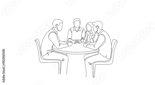 People sitting around a table, continuous line drawing for teamwork and collaboration