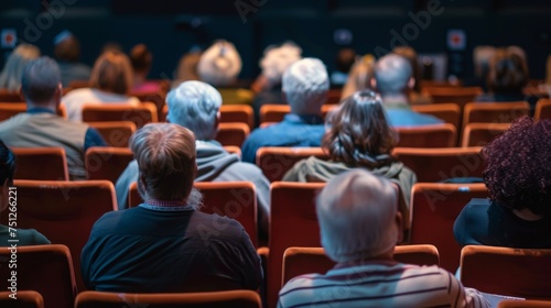 people sitting looking forward, back view