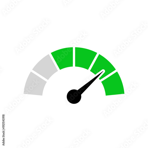 Performance Speedometer Gauge Icon Vector – Green Rating Meter Indicator Dashboard Illustration