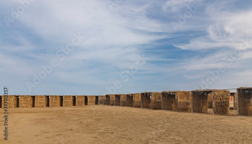 Pergolas made of thin bamboo on the beach
