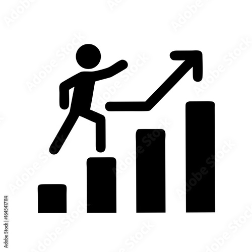 Person Climbing Bar Graph Upward Trend Icon – Growth and Success Illustration for Business, Finance, and Achievement
