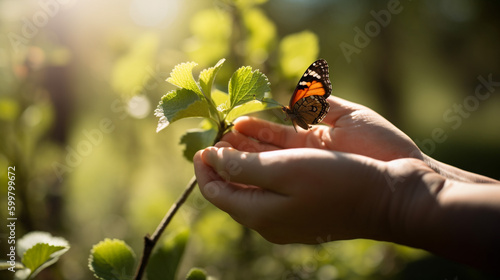 person holding a butterfly in their hands . Generative Ai