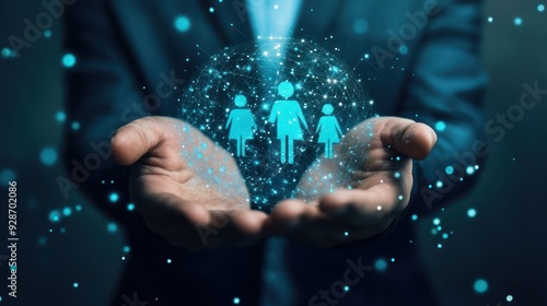 Person Holding a Holographic Globe with Three Human Icons