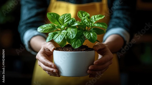 Person holding a small potted plant