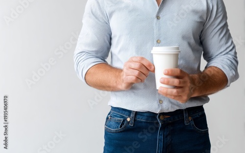 Person Holding Coffee Cup While Waiting in Minimalist Space