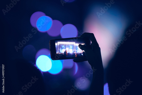 Person holding modern smartphone on a concert.