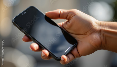 Person holding phone with sharp reflections, modern technology concept