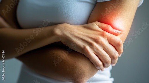 Person holding their elbow in pain after a strenuous workout, showing signs of joint inflammation