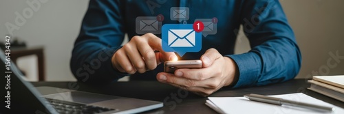 Person interacting with a smartphone displaying email notifications.