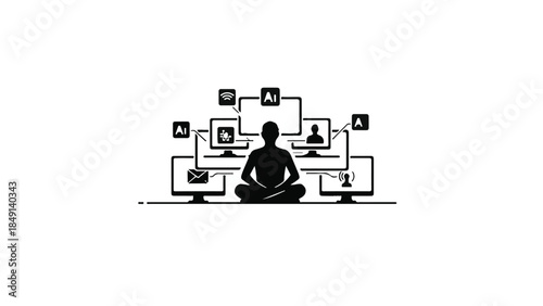 Person meditating amidst digital connections