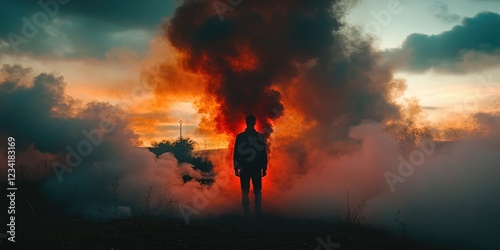 Person Standing Near Smoke Cloud