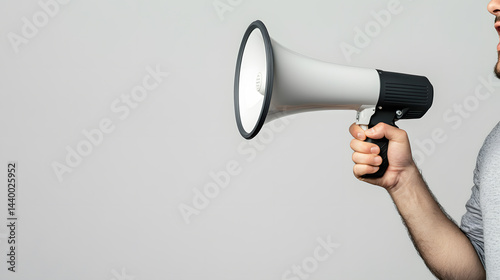Person using a megaphone to make an announcement.