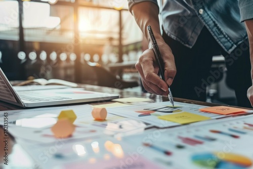 Person using pen to write on paper on table in office environment Writing and working concept