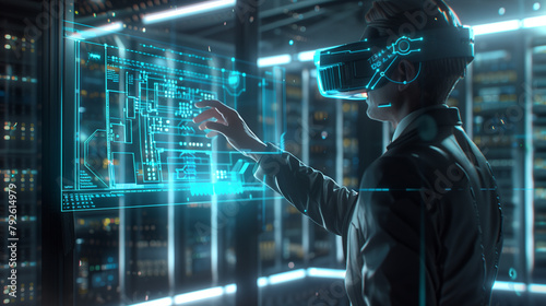 Person Using Virtual Reality Interface with Futuristic Cityscape