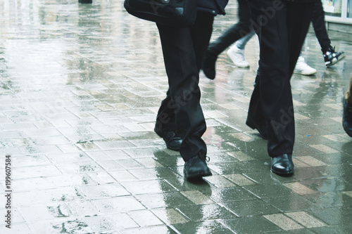 Person walking on the street in rainy day
