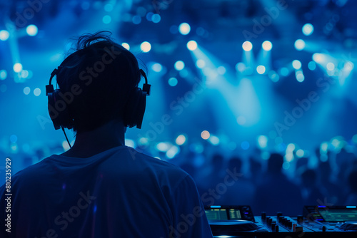 Person Wearing Headphones in Front of Stage