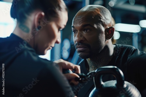 Personal Trainer and Client in Intense Kettlebell Workout at Professional Gym