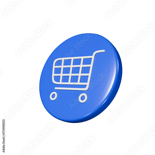 Perspective 3D Render of Circle Blue Shopping Cart Icon