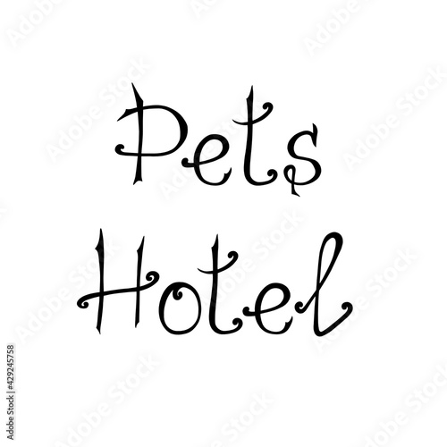 Pet hotel. Hand lettering in black on a white background. For the design of a pet shop, guest house, veterinary clinic, label, sticker.