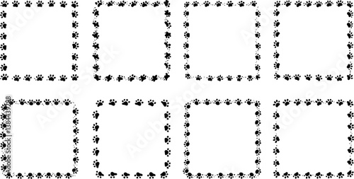 Pet paw print square frame collection. Cute borders different style. Dog or cat footprint trail. vector set