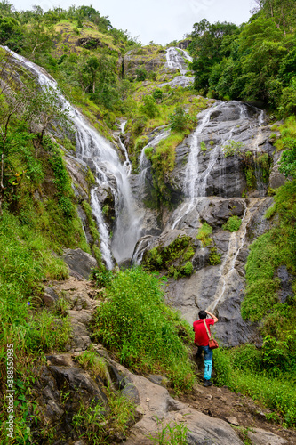 Petolosu, The highest waterfall with a standing hiker, the heart-shaped waterfall in Thailand at Umphang wildlife sanctuary, Tak province