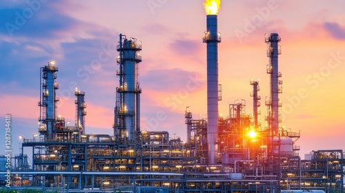 Petrochemical plant refining oil into gasoline, diesel, and industrial chemicals