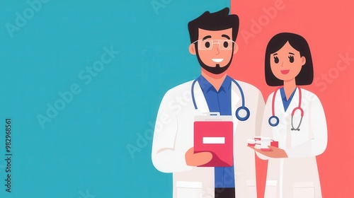 Pharmacist giving medication advice, isolated figure, clinical scene, flat design illustration